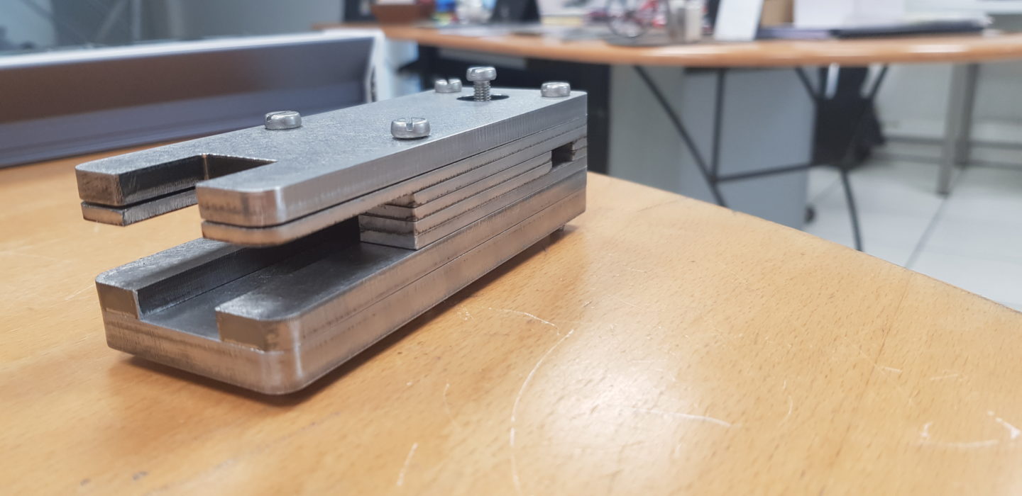Création réalisée par notre dessinateur Jonathan, qui, en substitution d’une solution d’impression 3D plastique, a préféré utiliser pour des raisons de solidité mécanique, du métal à assembler.